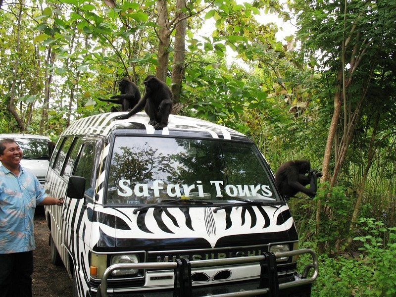 12:00 Uhr Abfahrt von Manado City oder dem Flughafen zum Tangkoko Naturreservat. Die ca. 2-stündige Fahrt zu diesem ca. 8890 ha großen Naturschutzgebiet ist landschaftlich sehr reizvoll, da wir an kleinen Dörfern vorbeifahren. Das Mittagessen wird unterwegs in einem lokalen Restaurant serviert.
